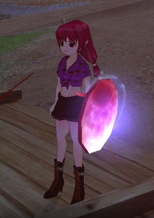 撮影日2008/09/25 イベントで作ったイウェカの盾。 確か71cmの品だったかな? 夜に装備すると綺麗でしたね。 戦闘には使わなかったですがw |