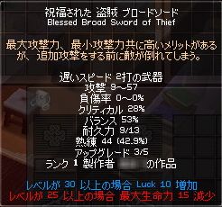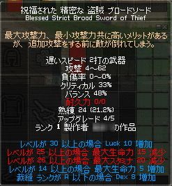 撮影日:2008/10/16 ようやく荒い盗賊ブロソの完成。 見たところ、貼り付けに1回失敗したみたいで耐久が削れてますねw このブロソには本当にしばらくお世話になった……。 |