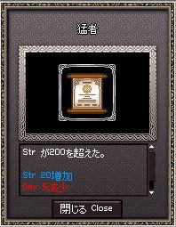 撮影日:2008/11/11 日付がかなり飛んでますが、 何もしてなかったわけじゃありません。 この時期はギルド移籍とかやってましたねー。 正確には移籍というより加入かな。 約半月近くギルド入ってなかったですし。 近接を本格的に上げ始めてだいぶ経った頃ですが、 ようやく猛者を取れたみたいです。 そういえば知り合いに ジャイアント装備やStrを上げる装備を借りていたような……?w |