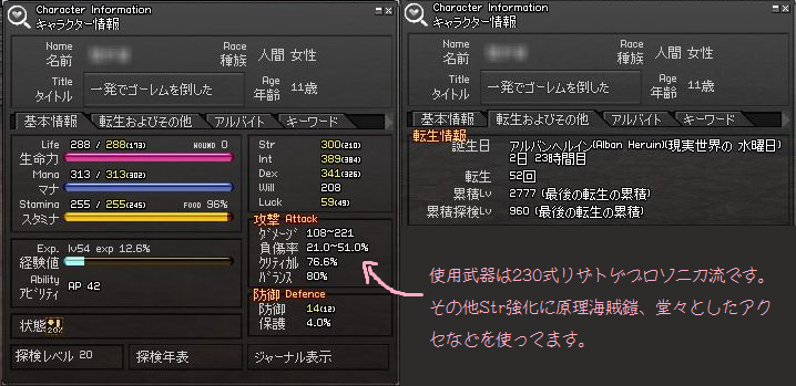 装備などの詳細は一番上のSSに書いてあります。